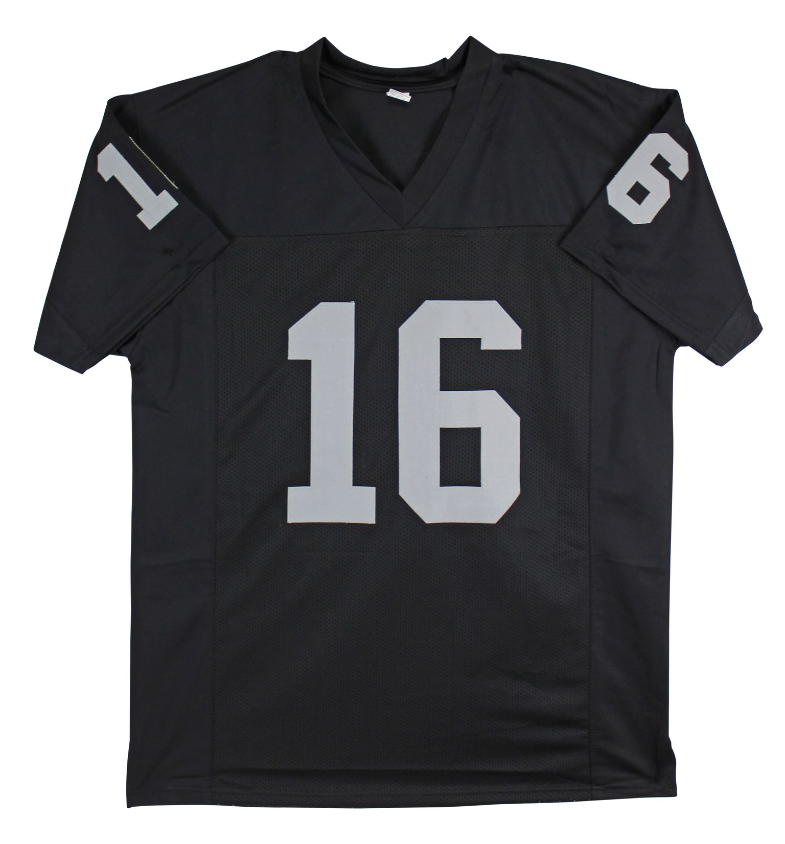 Custom jersey is size XL. Everything sewn on. Hand-signed and inscribed by Jim Plunkett.