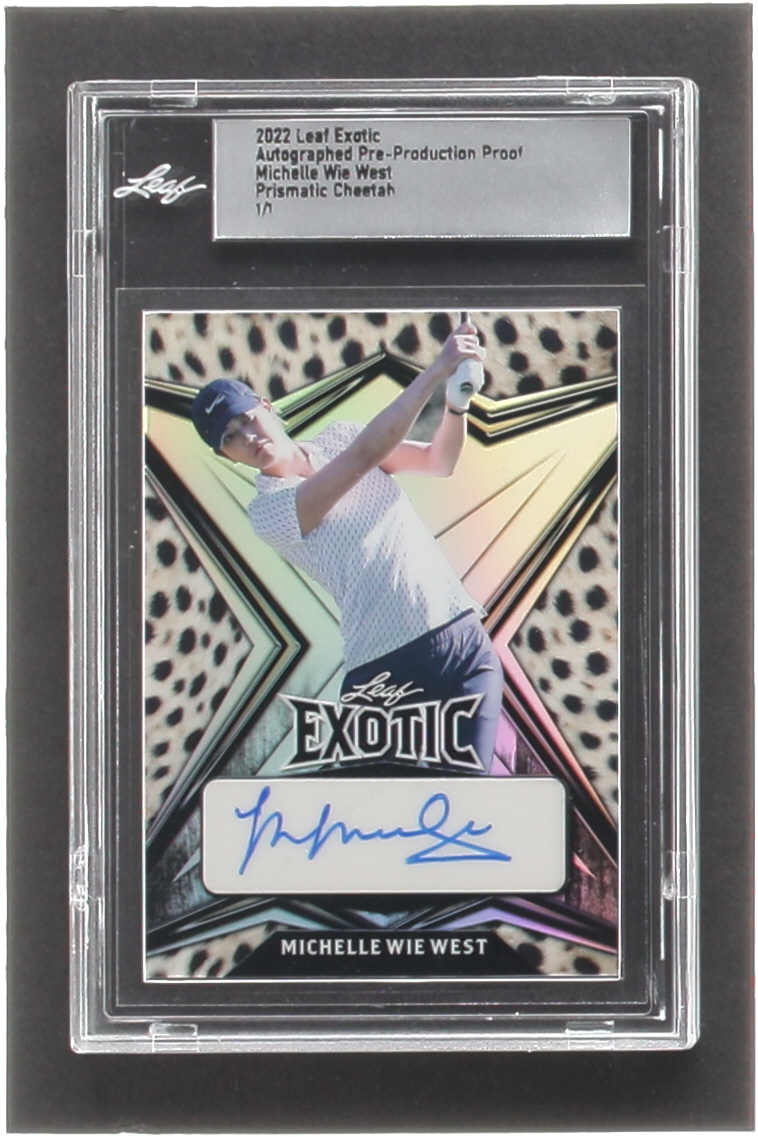 Michelle Wie West 2022 Leaf Exotic Autograph Prismatic Cheetah Pre-Production Proof #NNO #1/1 (Leaf)