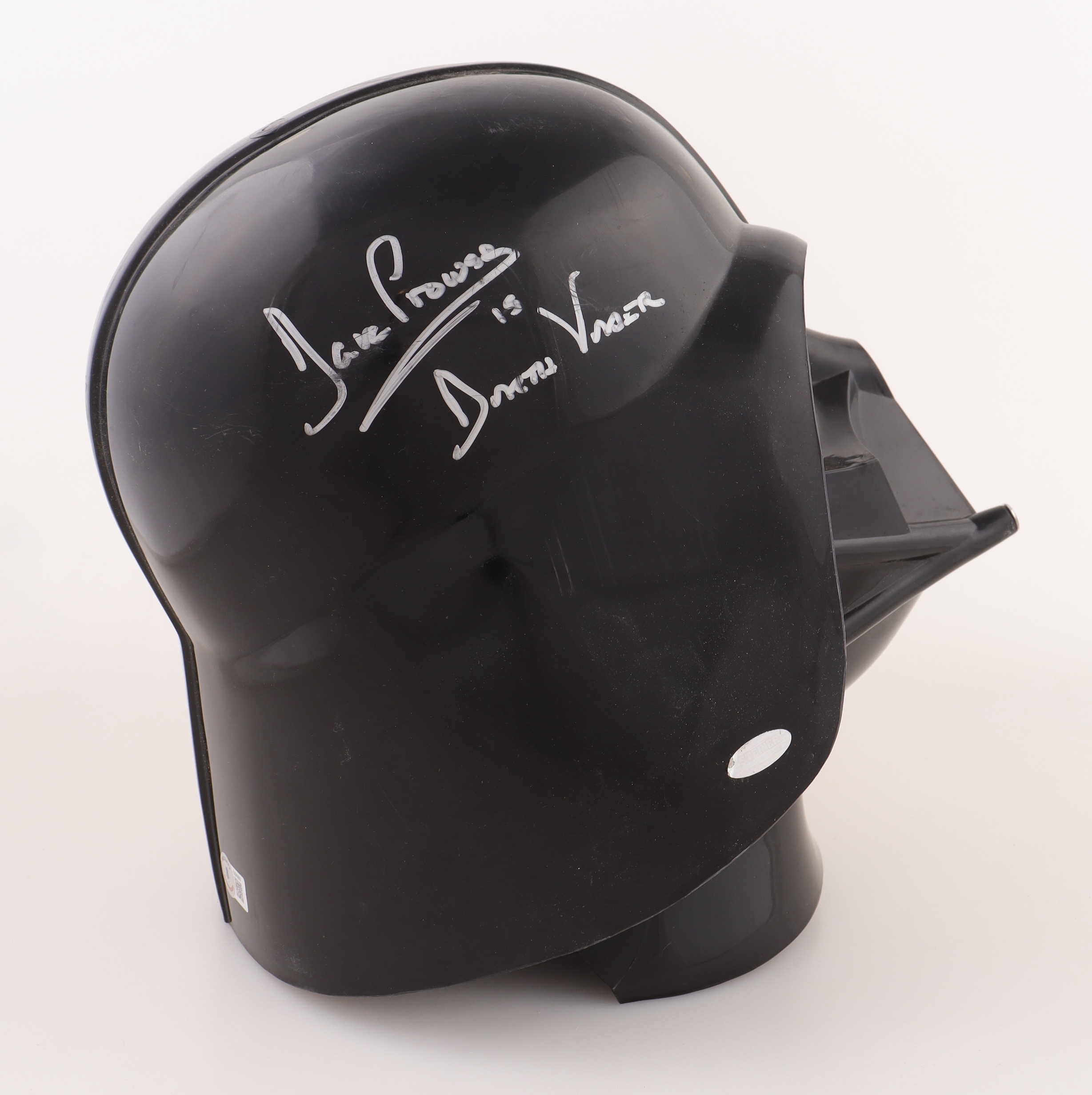 Rubies 2013 "Star Wars" Darth Vader helmet. Hand-signed and inscribed by David Prowse (D. 2020). Please note, there is scuffing on the helmet and comes with the original packaging.
