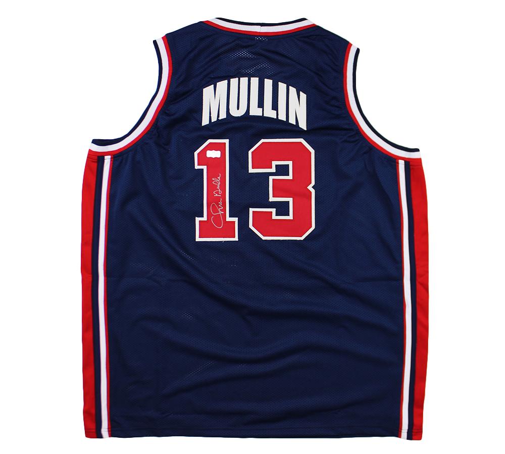Custom jersey. Everything sewn on, size XL. Hand-signed by Chris Mullin (HOF).