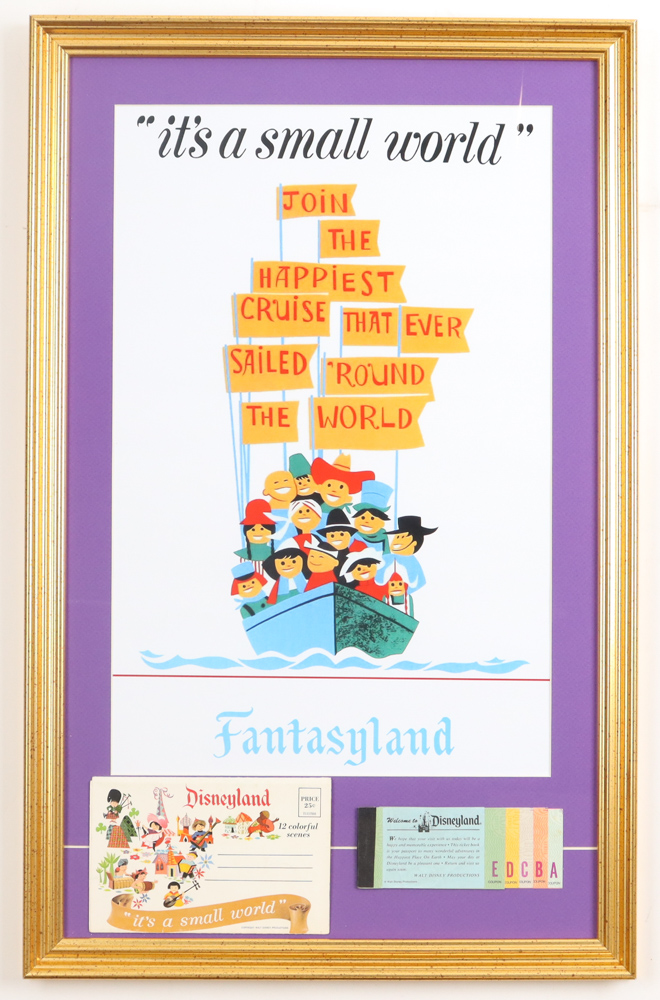 Disneyland's Fantasyland "It's A Small World" Custom Framed Print Display with Vintage Disneyland Ticket Book & Post Card Set