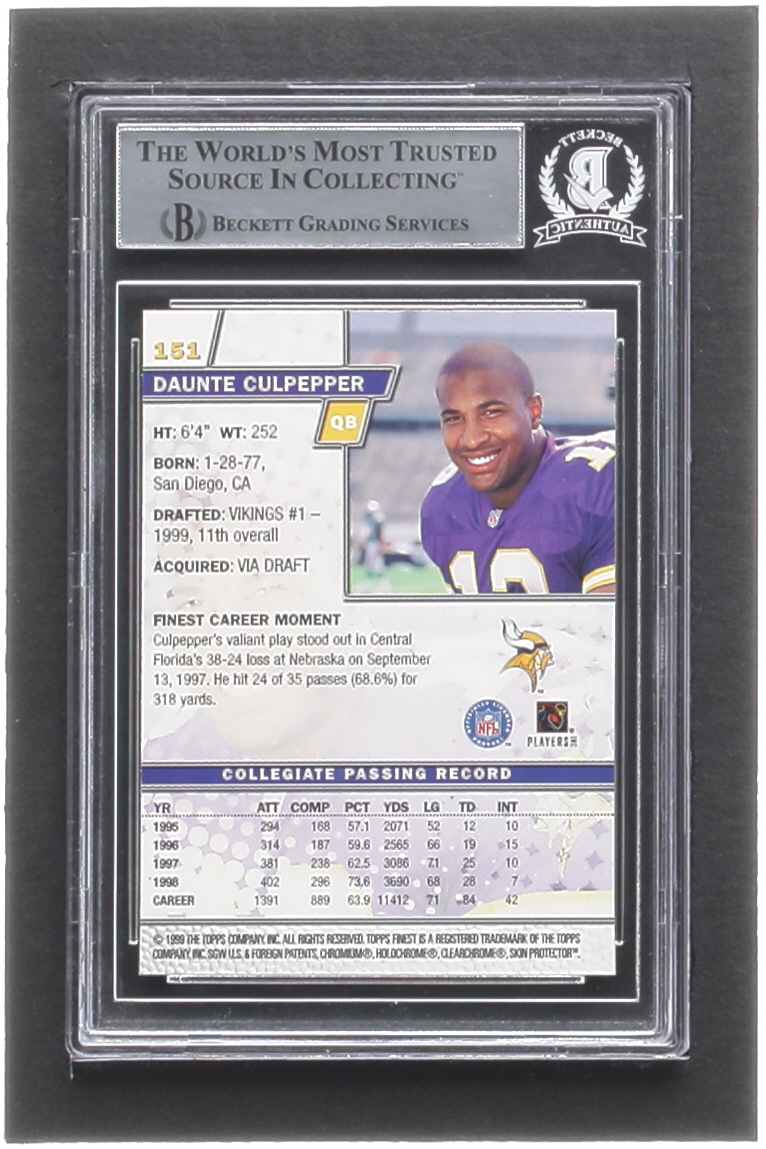 Daunte Culpepper Signed 1999 Finest #151 RC (BGS)
