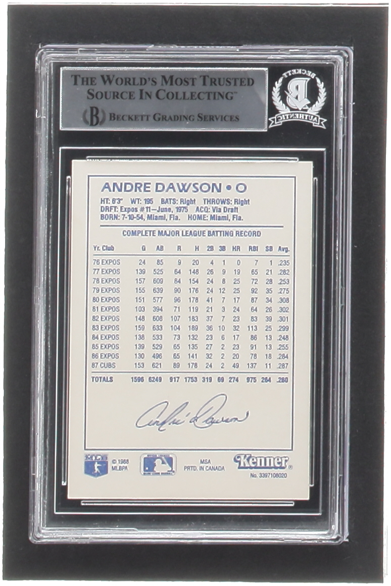 Andre Dawson Signed 1988 Kenner Starting Lineup Cards #28 (BGS)