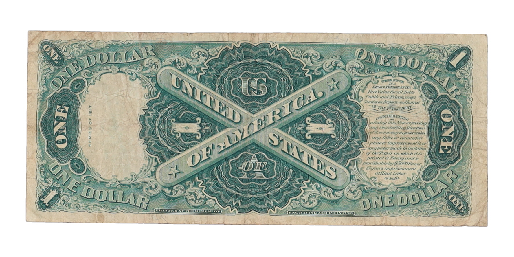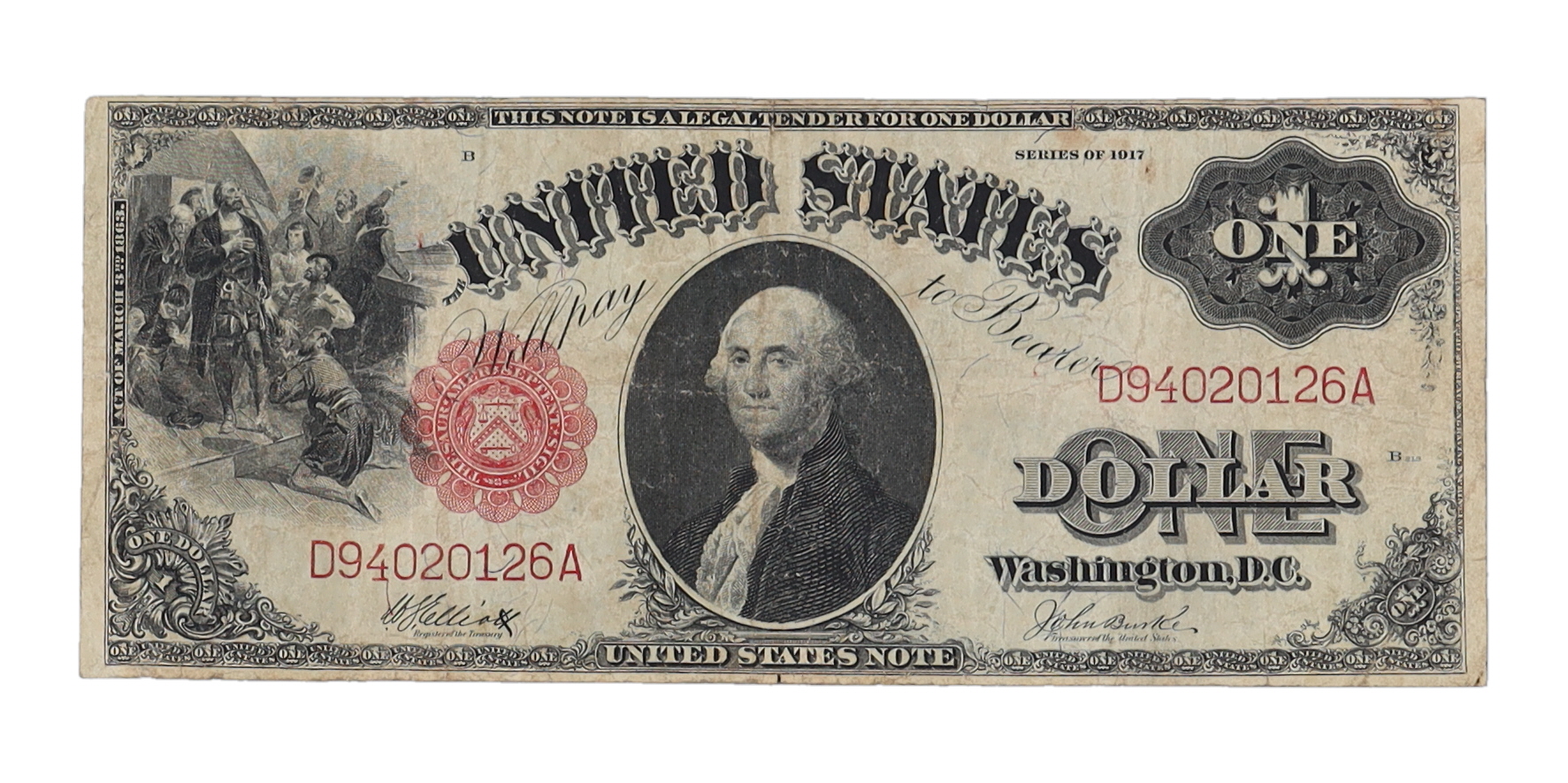 1917 $1 One Dollar Legal Tender Red Seal Large Size Bank Note Bill