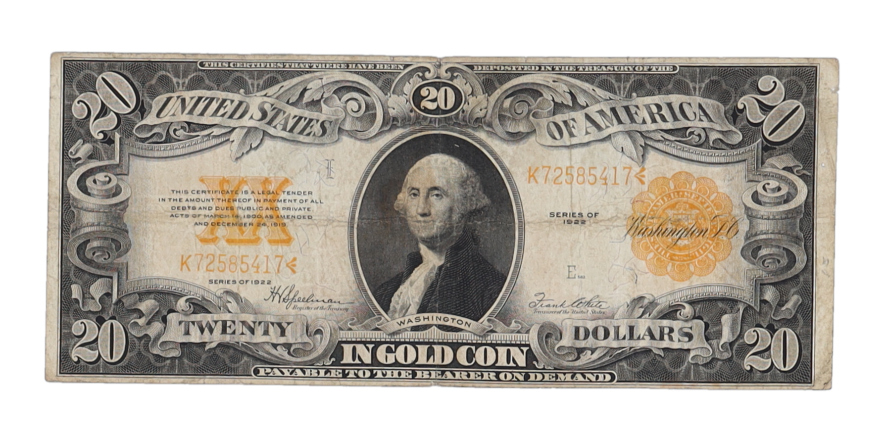 1922 $20 Twenty-Dollar U.S. Gold Certificate Bank Note