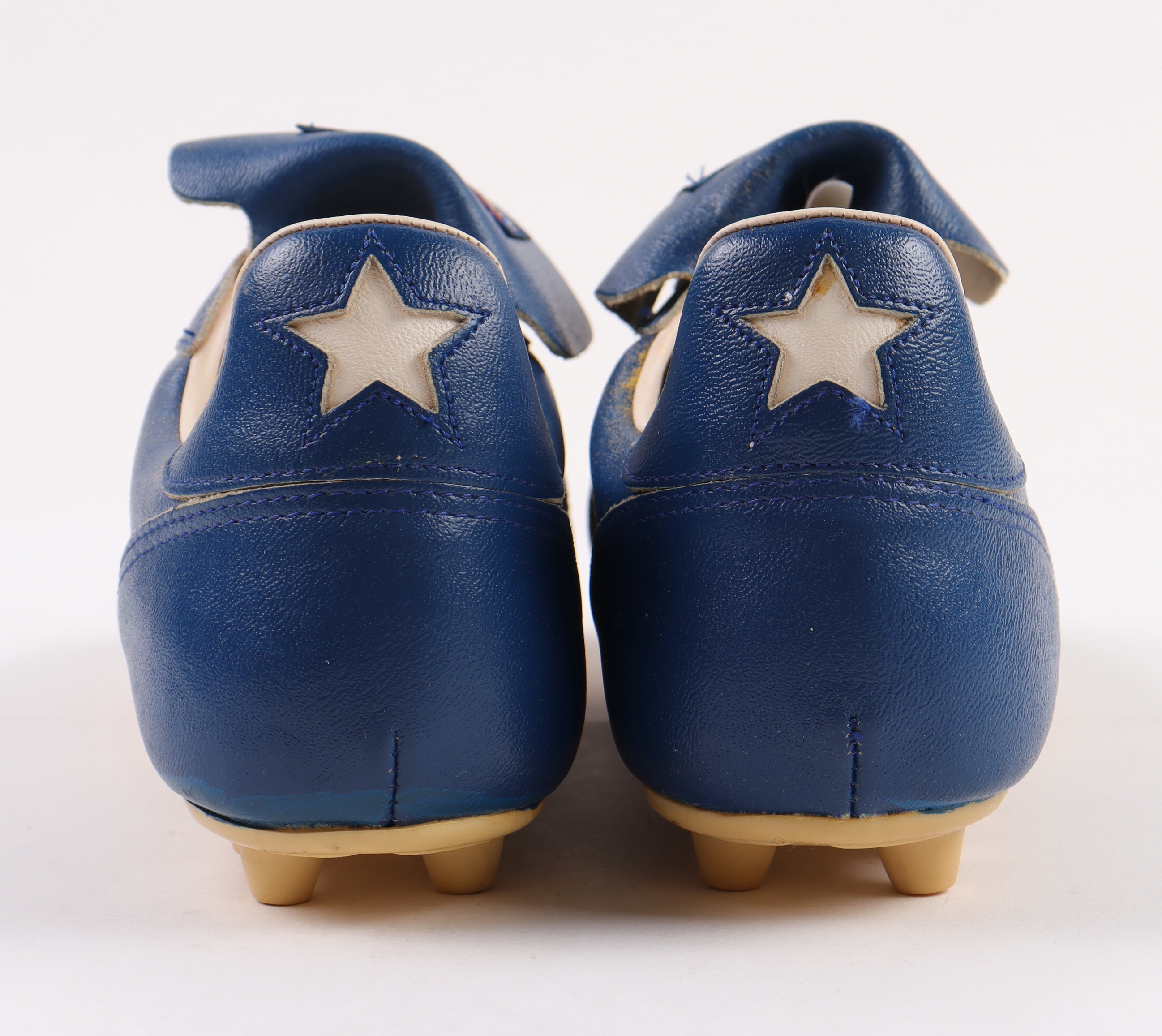 Pair of vintage leather baseball cleats. The right cleat has been hand-signed by Nolan Ryan (California Angels, HOF).