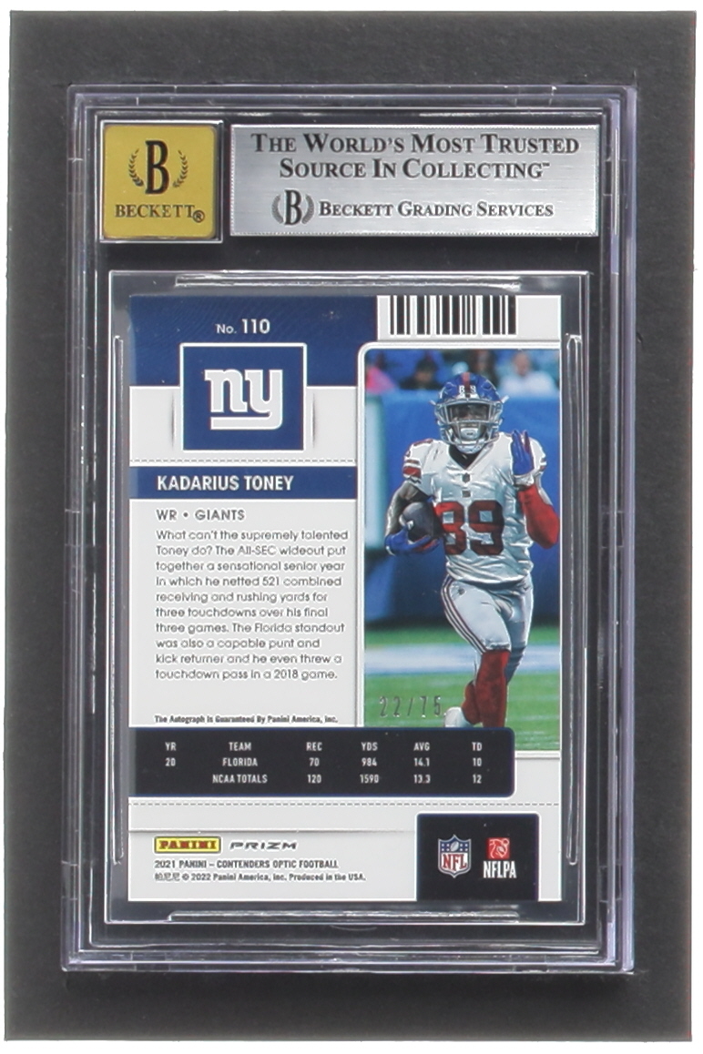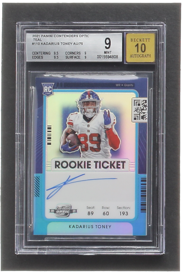 Kadarius Toney 2021 Panini Contenders Optic Teal #110 Autograph RC #22/75 (BGS 9 | Autograph Graded BGS 10)