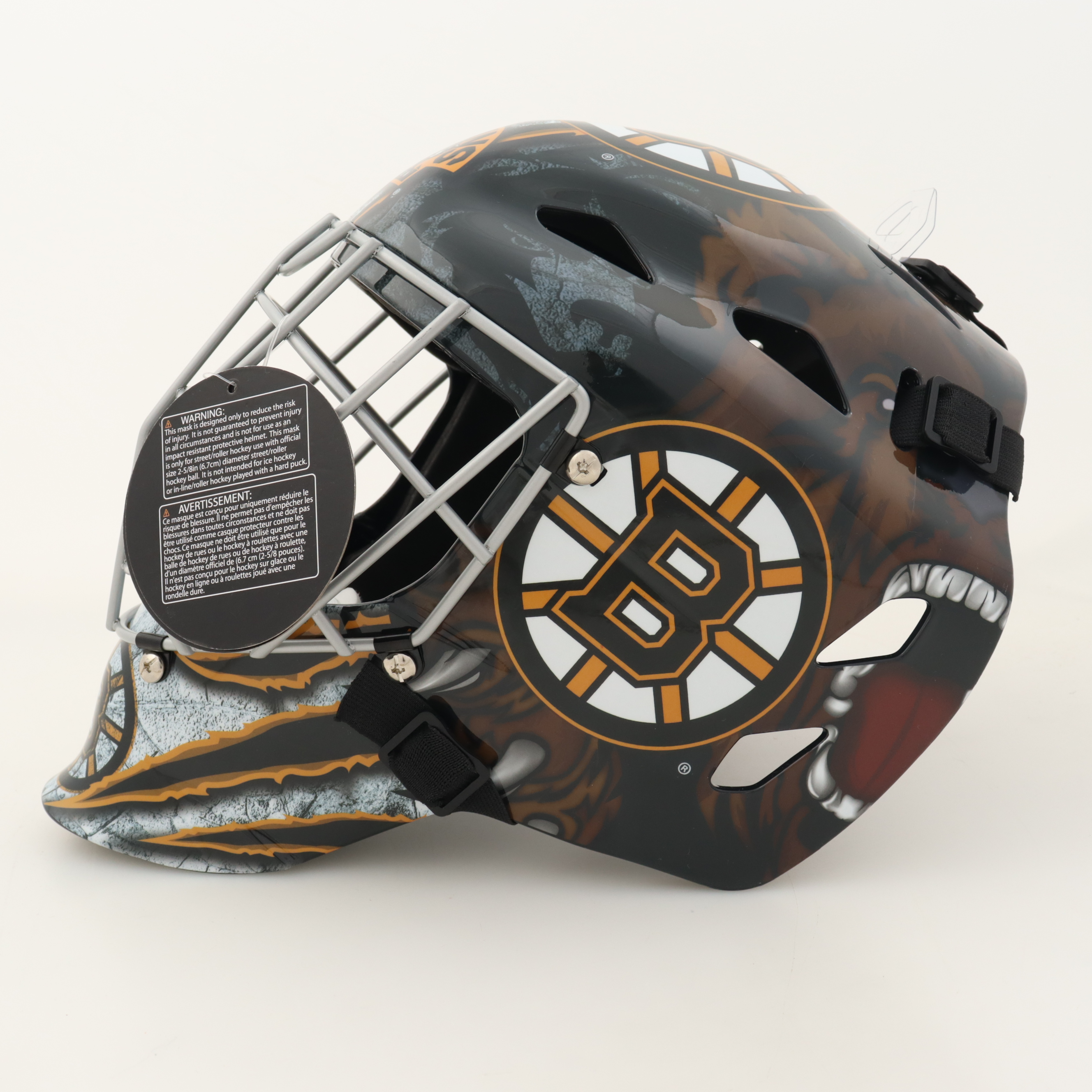 Franklin NHL Boston Bruins full-size replica hockey goalie mask. Hand-signed by Linus Ullmark