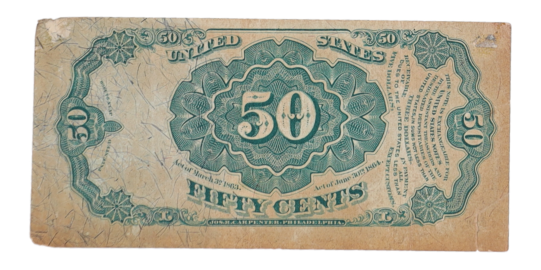 1875 United States 50¢ Fifty Cents Fractional Bank Note Bill