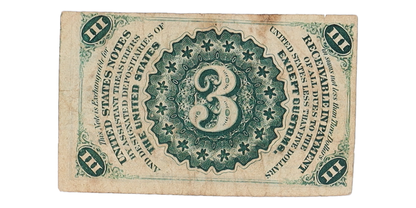 1864 United States 3¢ Three Cents Fractional Bank Note Bill
