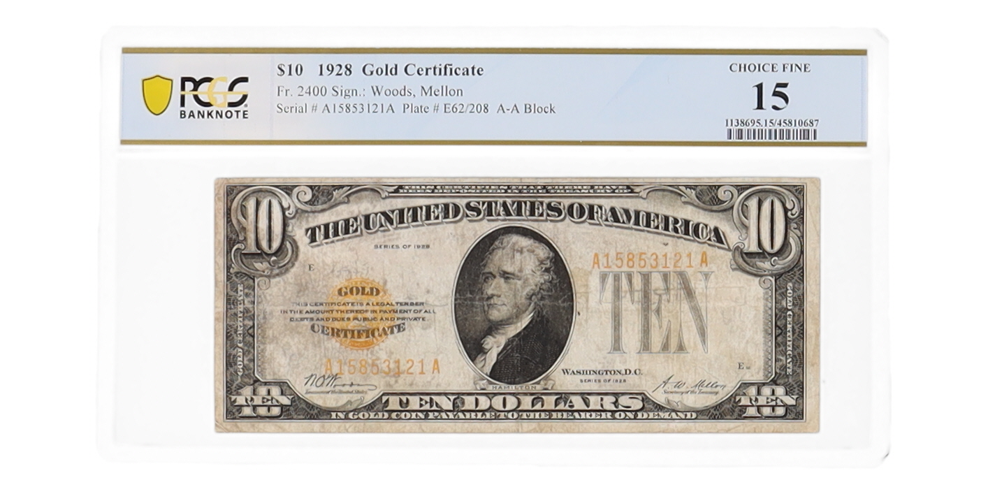 1928 $10 Ten Dollar Gold Certificate U.S. Bank Note (PCGS CF15)
