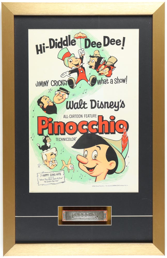 Vintage "Pinocchio" Custom Framed Print Display with Pinocchio Harmonica