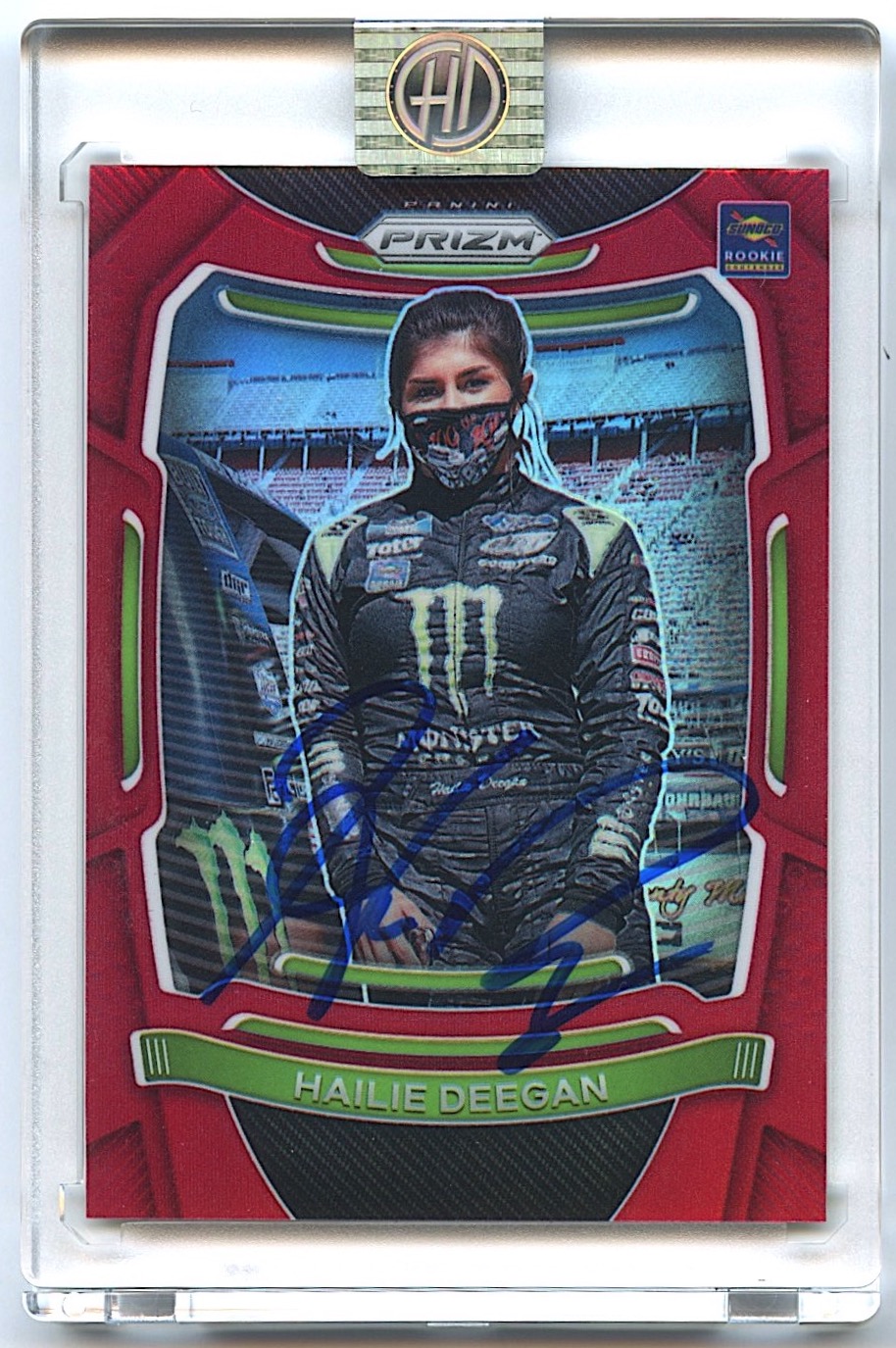 The autograph has been encapsulated with an official Hailie Deegan tamper proof hologram and includes a matching exclusive Hailie Deegan COA.