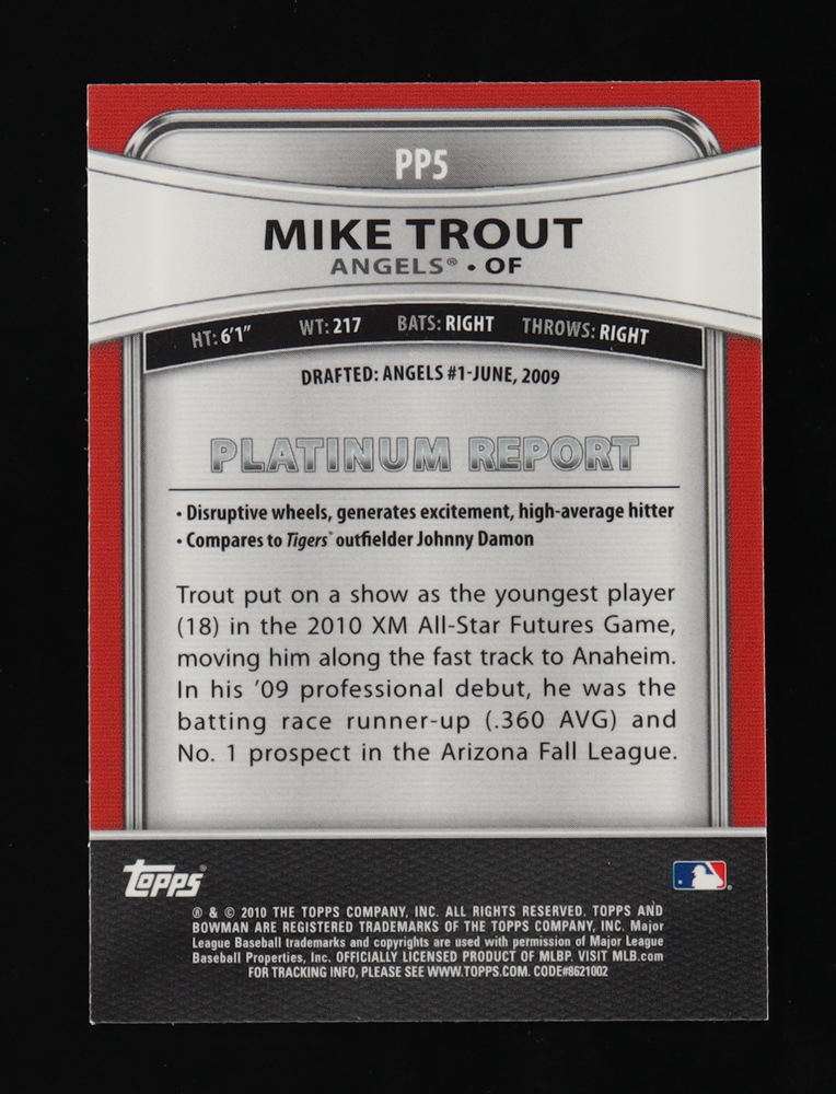 Mike Trout 2010 Bowman Platinum Prospects #PP5 RC