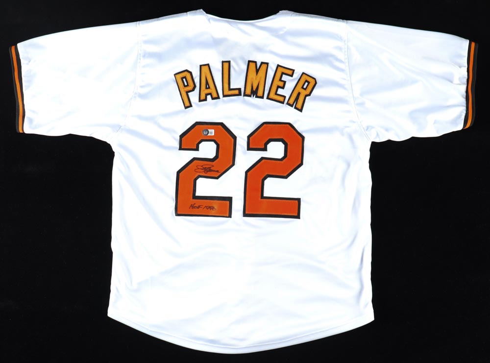 Jersey is size XL. Everything is sewn on. Hand-signed and inscribed by Jim Palmer (HOF).