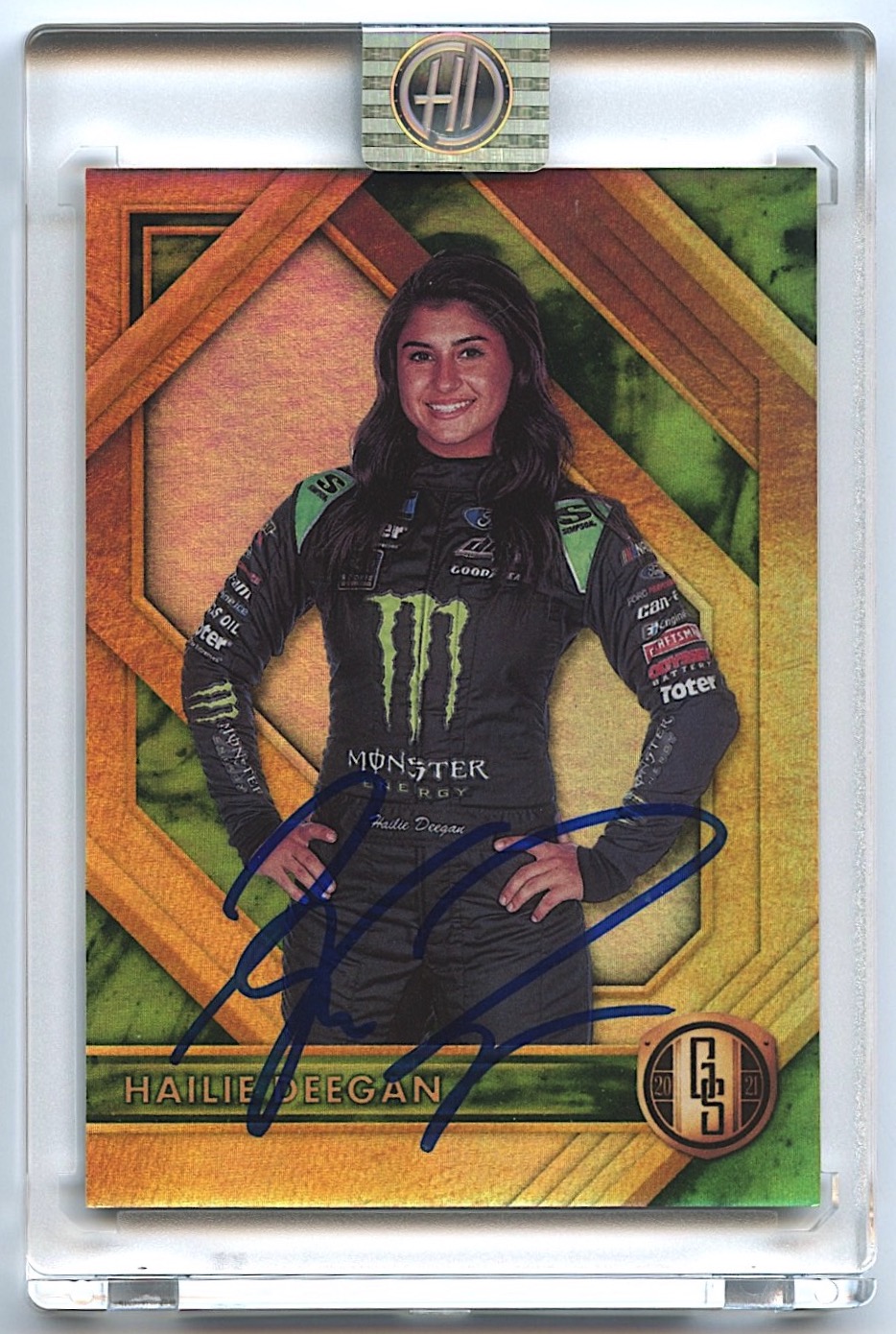 The autograph has been encapsulated with an official Hailie Deegan tamper proof hologram and includes a matching exclusive Hailie Deegan COA.