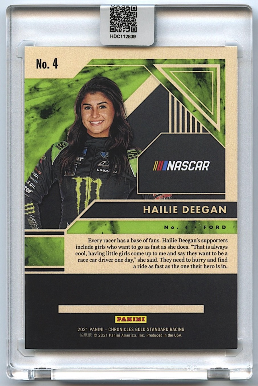 Hailie Deegan Signed 2021 Panini Chronicles Gold Standard #4 (Deegan COA)