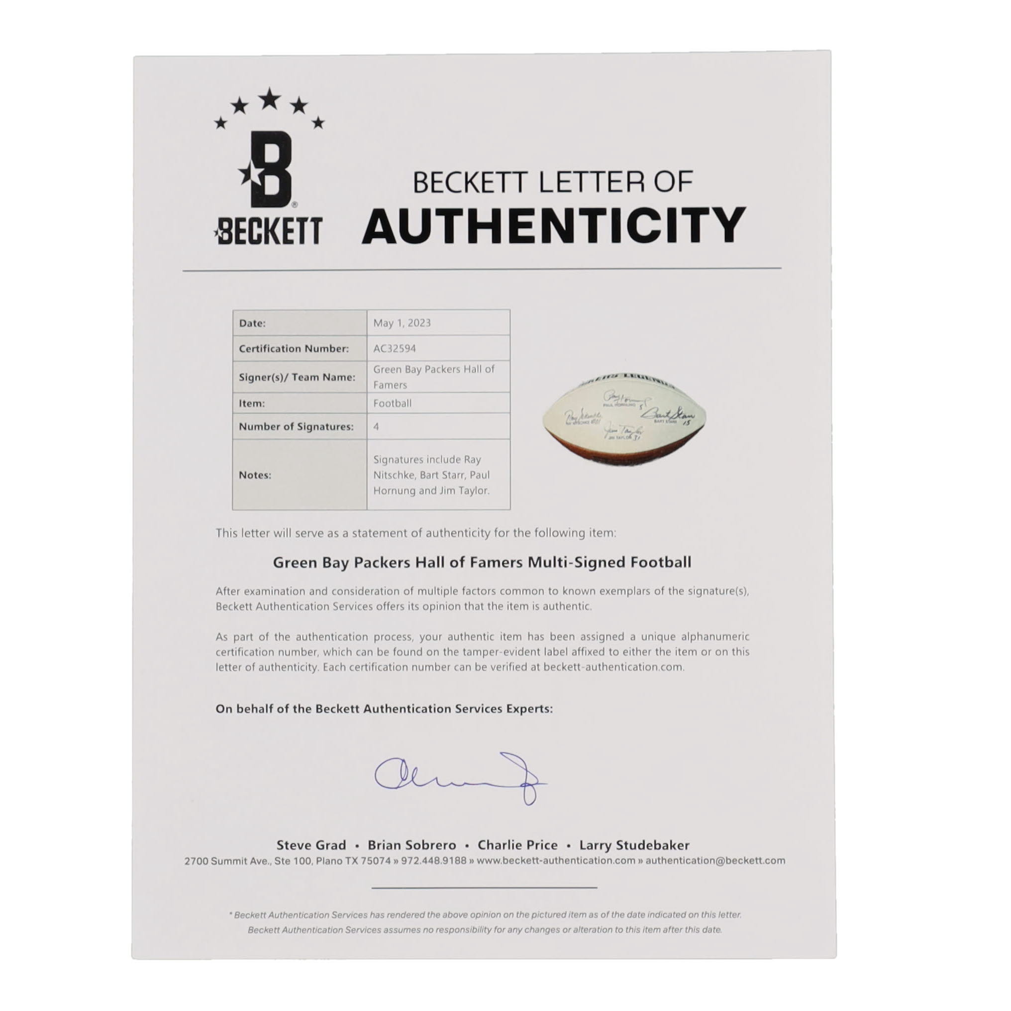 Packers Hall of Famers Football Signed by (4) with Ray Nitschke, Bart Starr, Paul Hornung & Jim Taylor (Beckett)