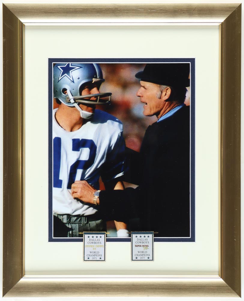 Roger Staubach & Tom Landry Cowboys Custom Framed Photo Display with (2) Super Bowl Pins