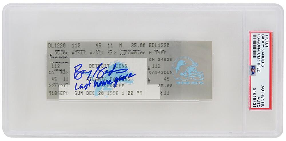Barry Sanders Signed Lions 1998 Ticket Inscribed "Last Home Game" (PSA)