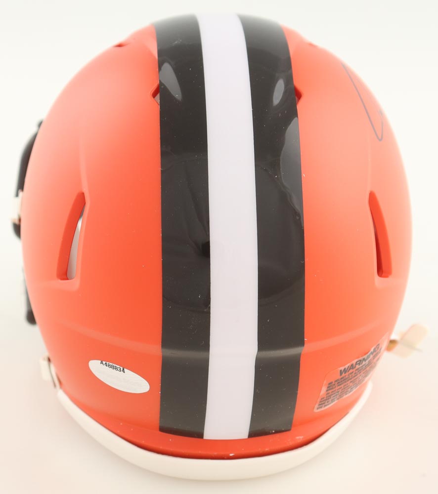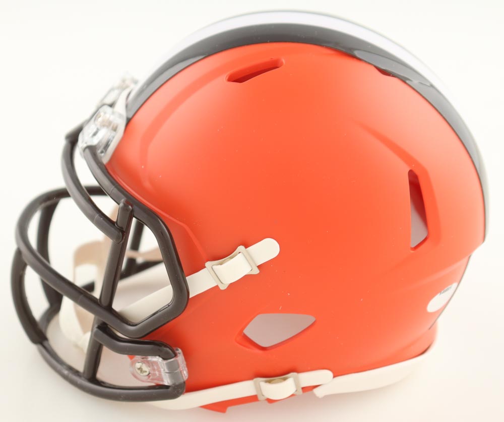 Riddell Cleveland Browns Speed mini helmet. Hand-signed and inscribed by Joe Thomas (HOF).
