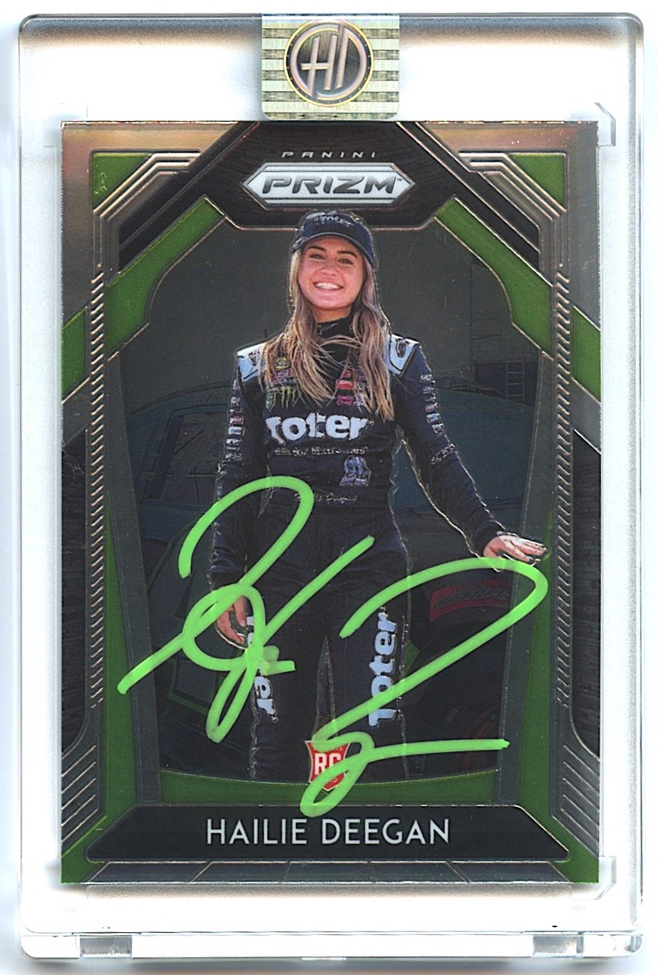 The autograph has been encapsulated with an official Hailie Deegan tamper proof hologram and includes a matching exclusive Hailie Deegan COA.