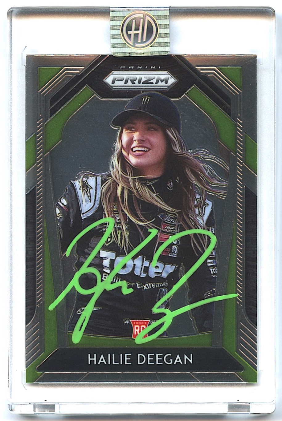 The autograph has been encapsulated with an official Hailie Deegan tamper proof hologram and includes a matching exclusive Hailie Deegan COA.