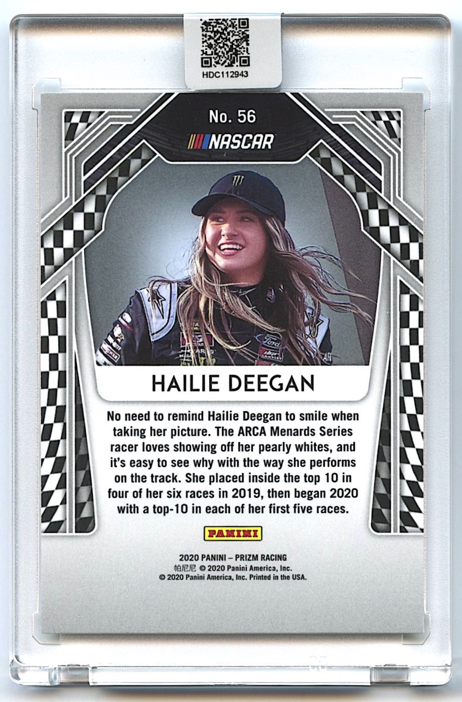 Hailie Deegan Signed 2020 Panini Prizm #56 RC (Deegan COA)