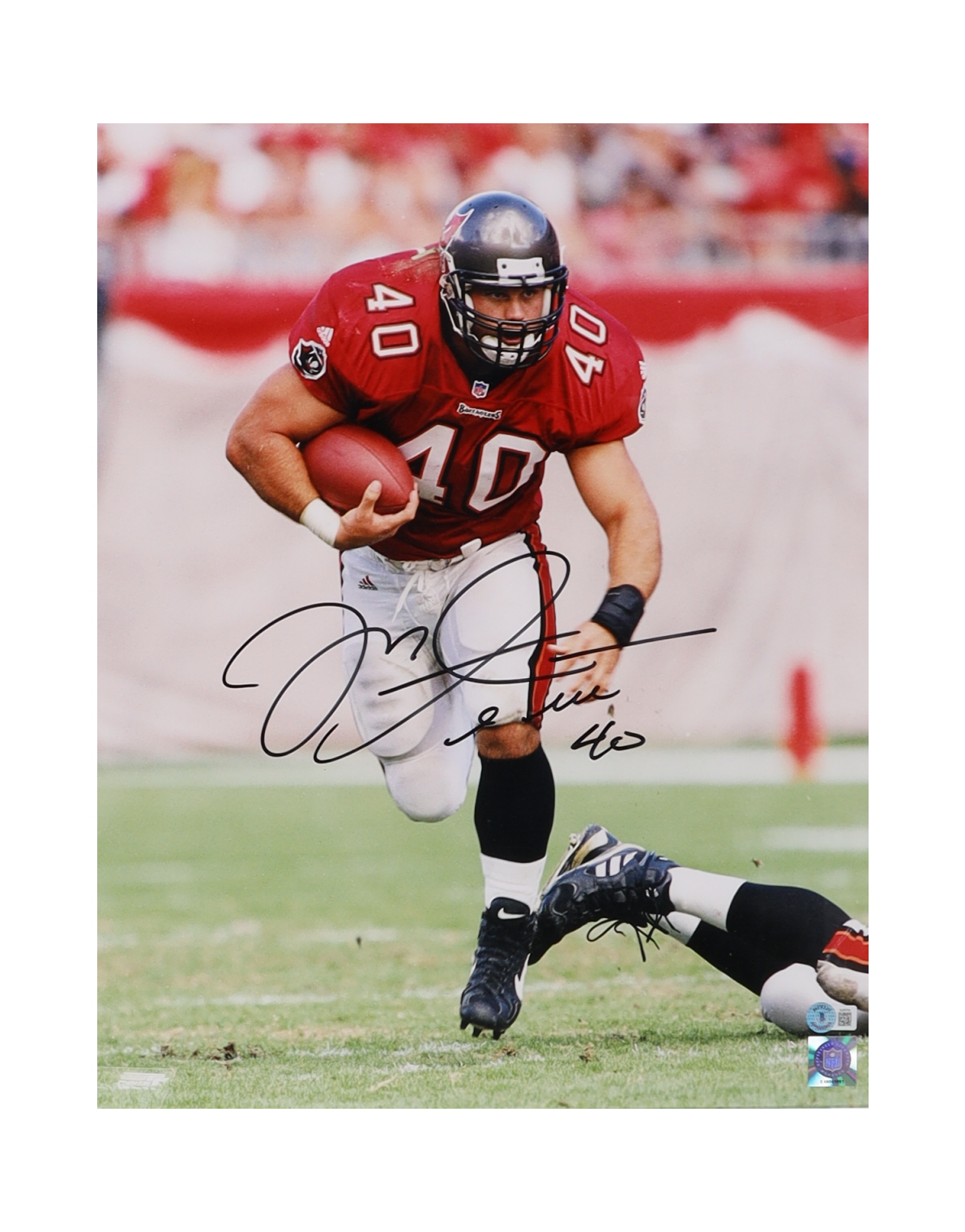 Photo measures approximately 16" x 20" in size. Hand-signed by Mike Alstott (Tampa Bay Buccaneers).