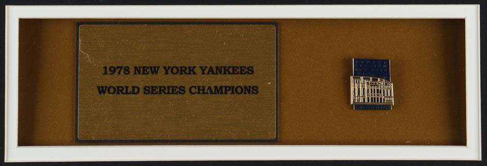 Yankees 1978 World Champions Custom Framed Jersey Display With Yankee Stadium Pin Team Signed By (8) With Reggie Jackson, Craig Nettles, Lou Piniella, Mickey Rivers (Beckett)