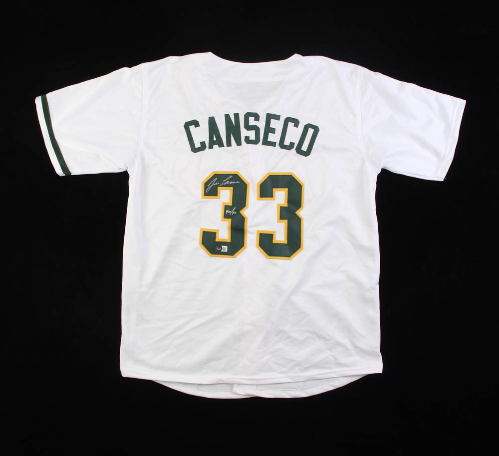 Custom jersey. Everything is sewn on, size XL. Hand-signed and inscribed by Jose Canseco.