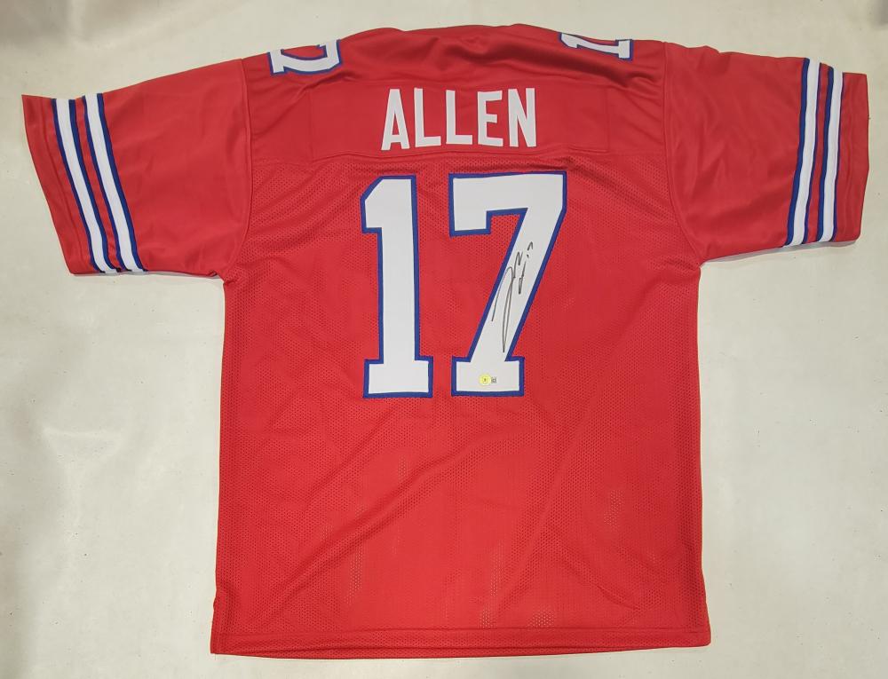 Jersey with everything sewn on, size XL. Hand-signed by Josh Allen.