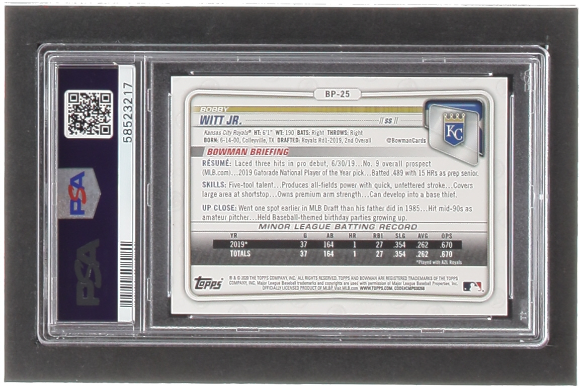 Bobby Witt Jr. 2020 Bowman Paper Prospects #BP25 RC (PSA 9)