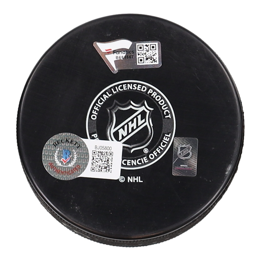 Vince Dunn Signed Kraken Logo Hockey Puck Inscribed "Release the Kraken" (Beckett & Fanatics)