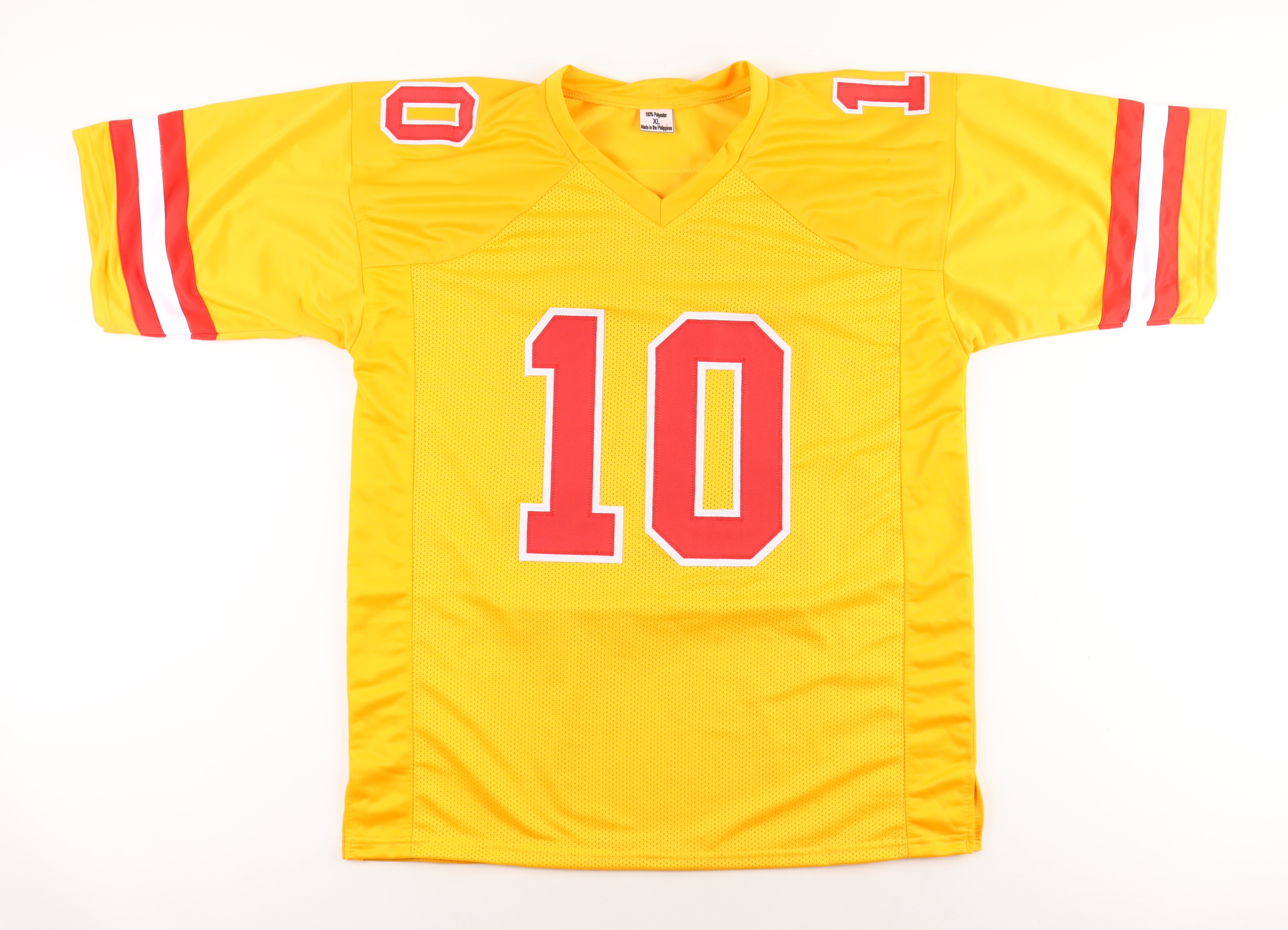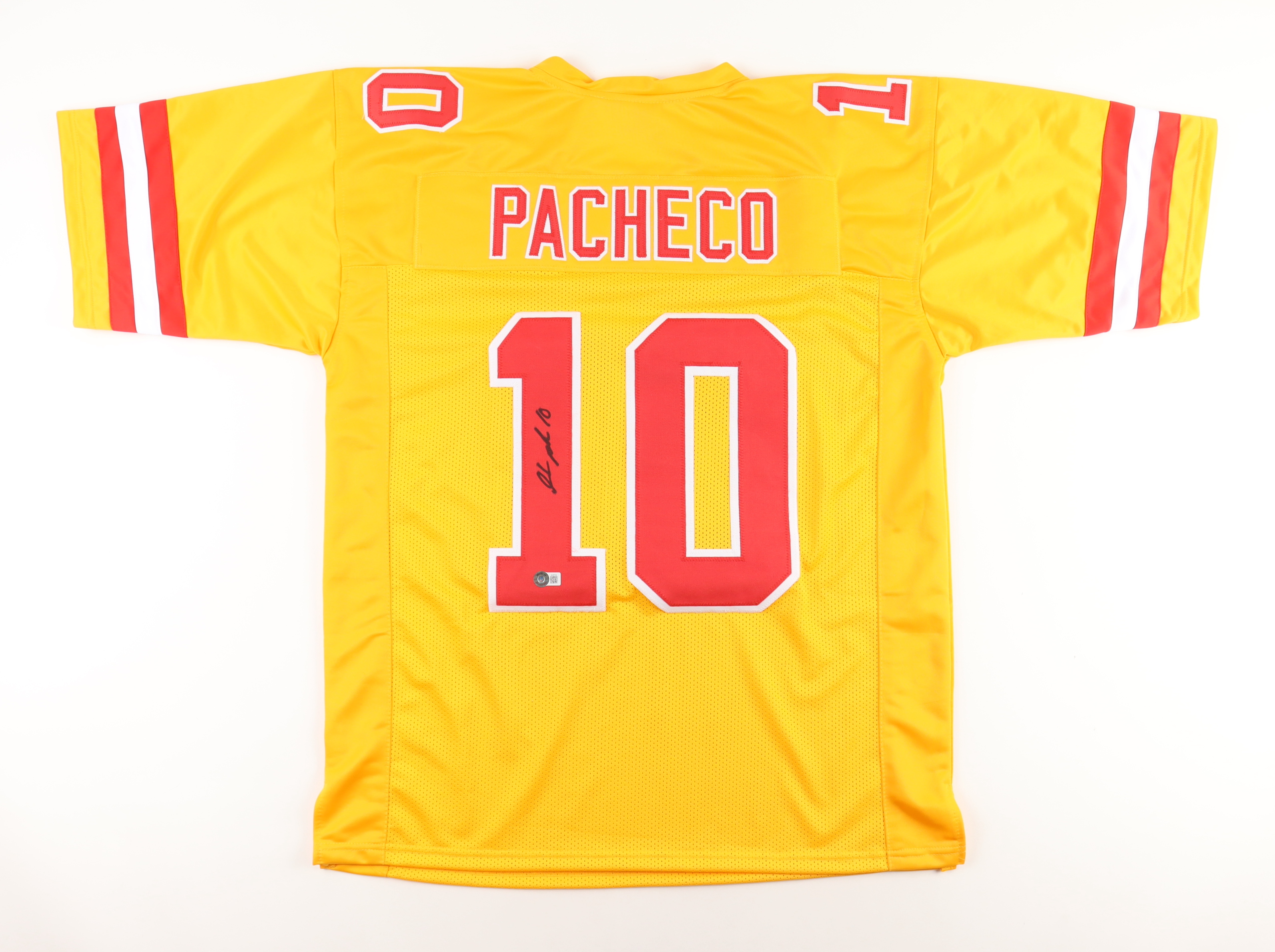 Custom jersey with everything sewn on, size XL. Has been hand-signed by Isiah Pacheco.