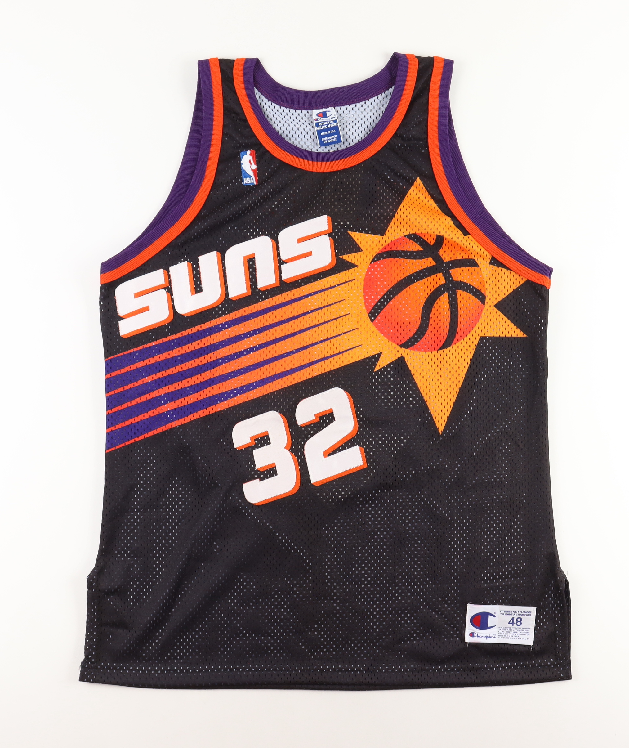 Champion jersey with everything printed and sewn on, size 48. Hand-signed by Jason Kidd (Phoenix Suns, HOF).