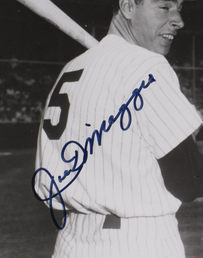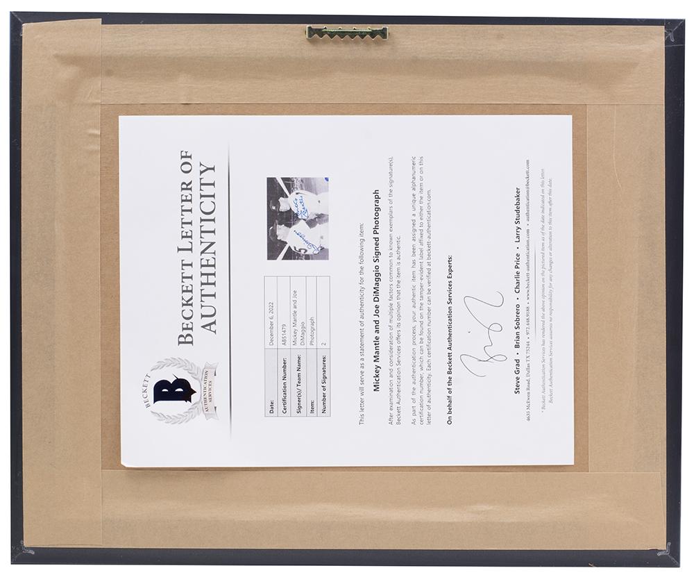 Custom frame measures 11" x 14" in size and features a photo that has been hand-signed by Mickey Mantle (D.1995, HOF) and Joe DiMaggio (D.1999, HOF).