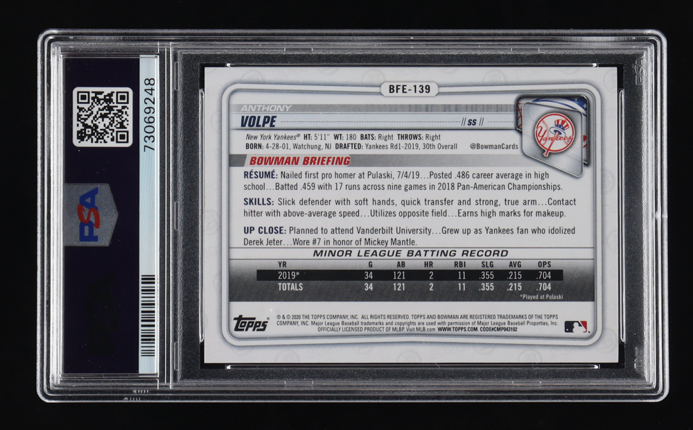 Anthony Volpe 2020 Bowman 1st Edition Orange Foil #BFE139 #24/25 (PSA 9)