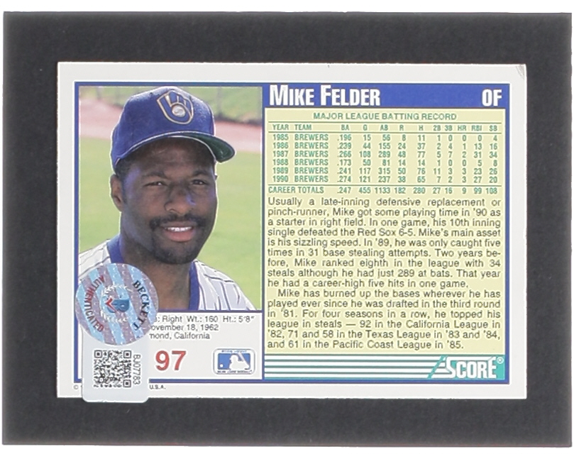 Mike Felder Signed 1991 Score #97 (Beckett)