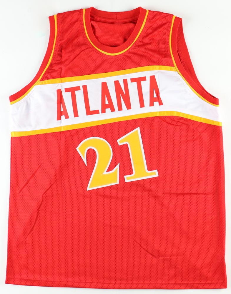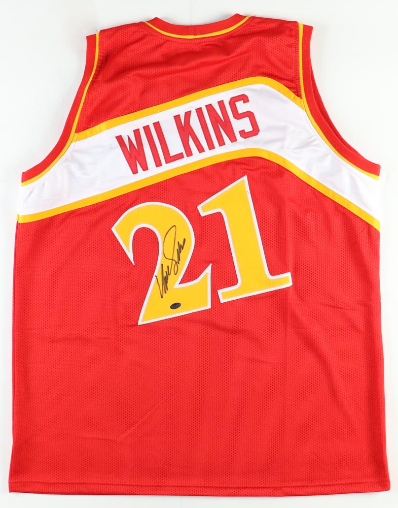 Custom jersey with everything sewn on, size XL. Hand-signed by Dominique Wilkins (HOF).