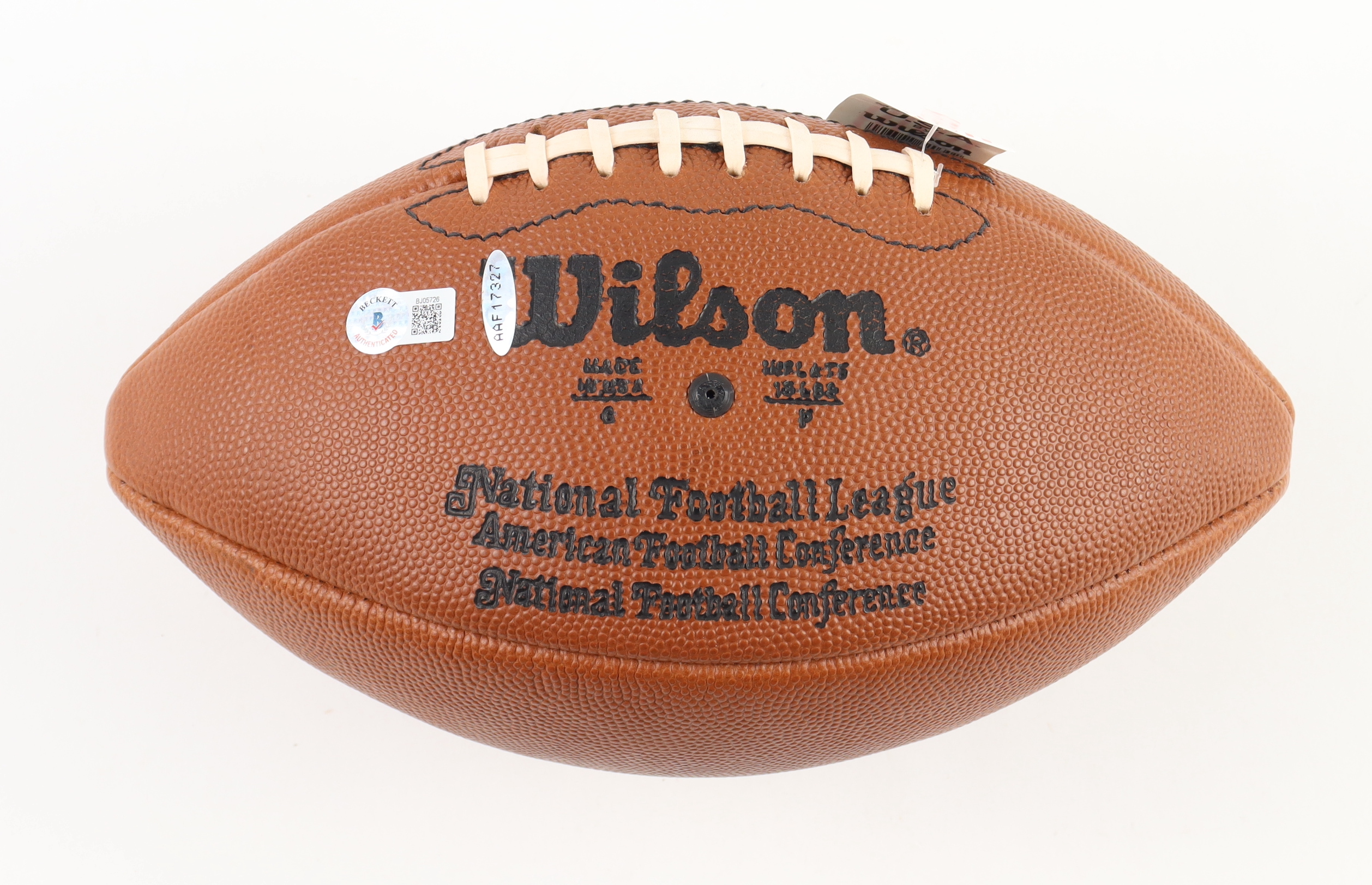 The autograph includes an official Beckett Authentication Services serially numbered hologram as well as a Upper Deck Authentication hologram for authenticity purposes.