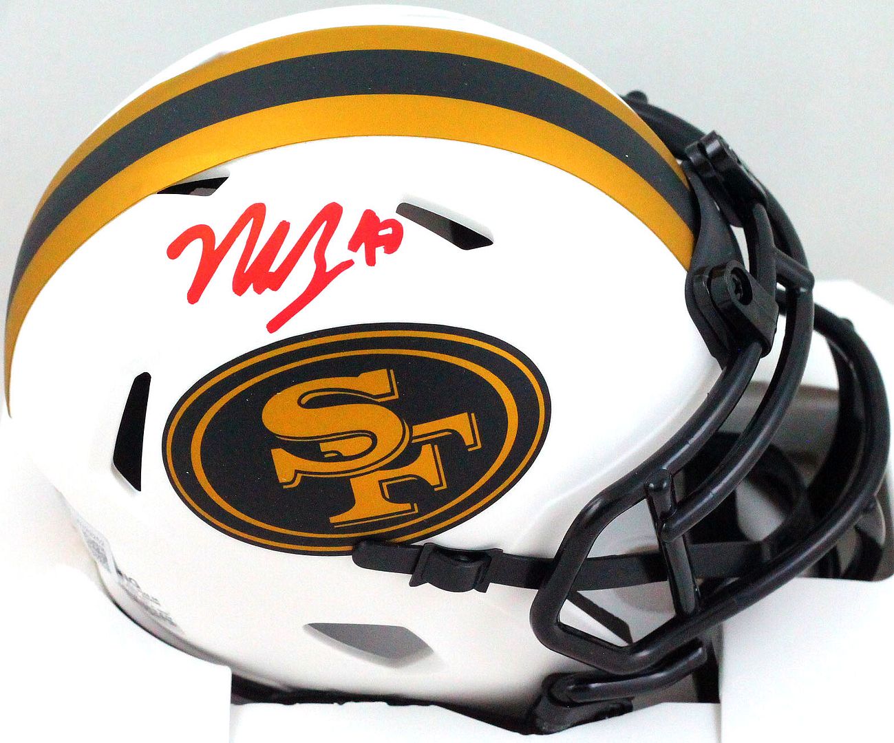 Riddell San Francisco 49ers lunar eclipse alternate Speed mini helmet. Has been hand-signed by Nick Bosa.