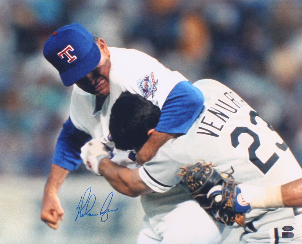 Photo measures 16" x 20" in size and has been hand-signed by Nolan Ryan (Texas Rangers, HOF).