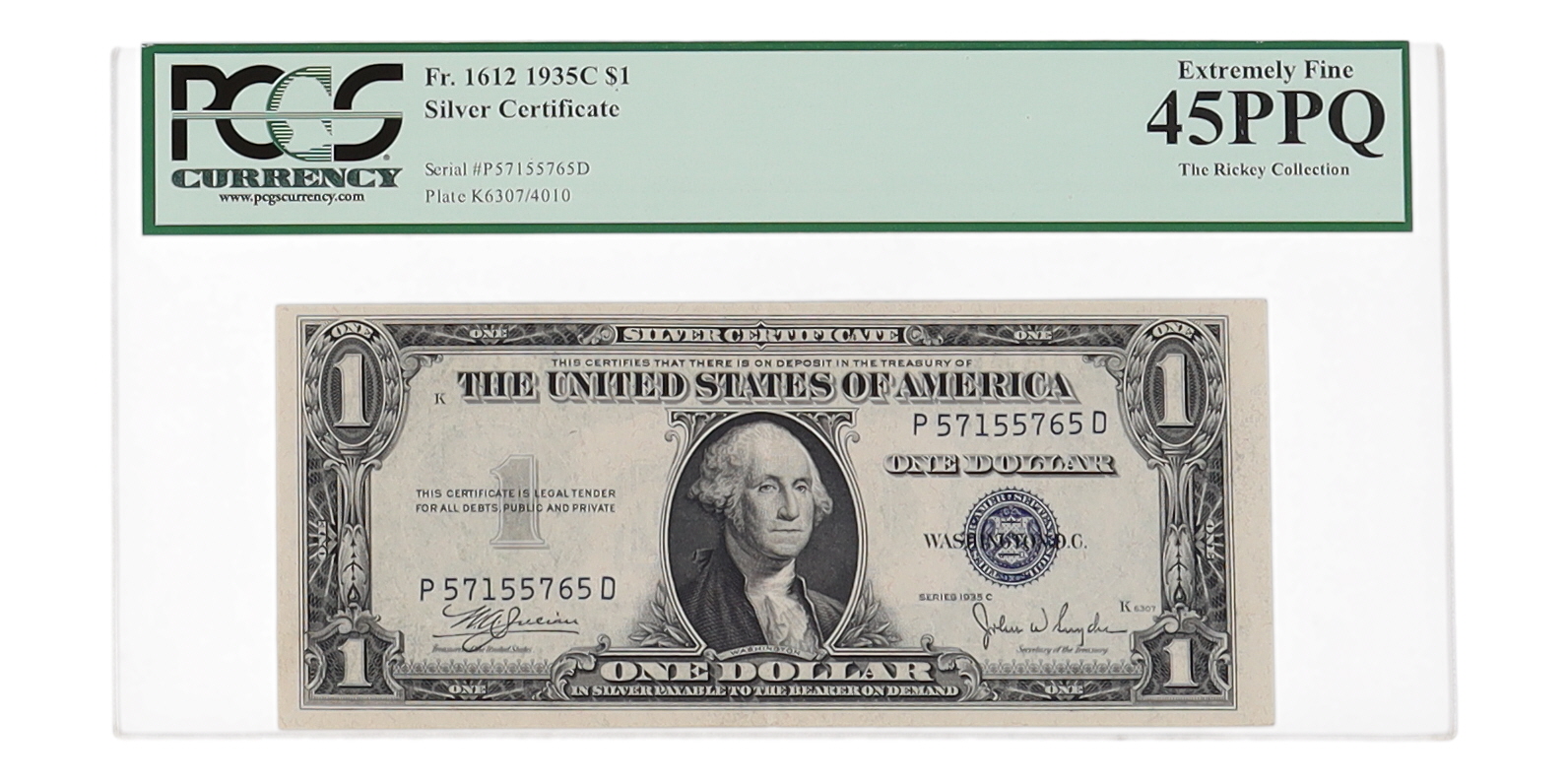 1935-C United States $1 One Dollar Silver Certificate - The Rickey Collection (PCGS Extremely Fine 45 PPQ)