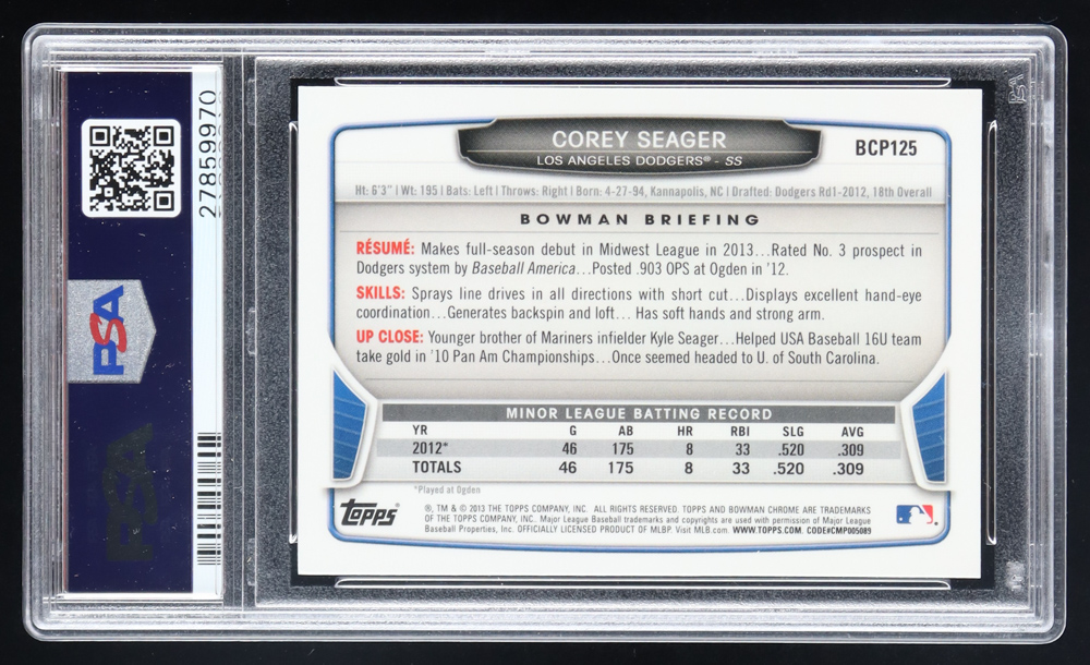 Corey Seager 2013 Bowman Chrome Prospects #BCP125A RC (PSA 10)