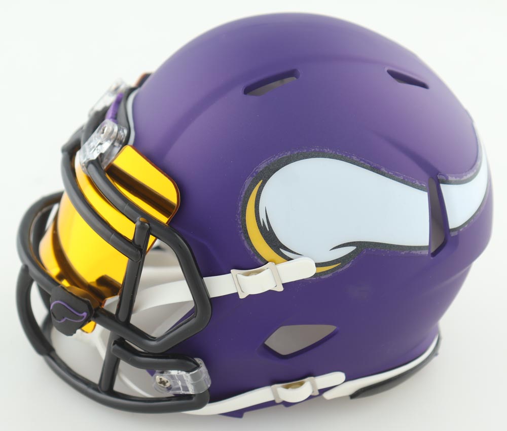 Riddell Minnesota Vikings speed mini helmet with visor. Hand-signed by Justin Jefferson.