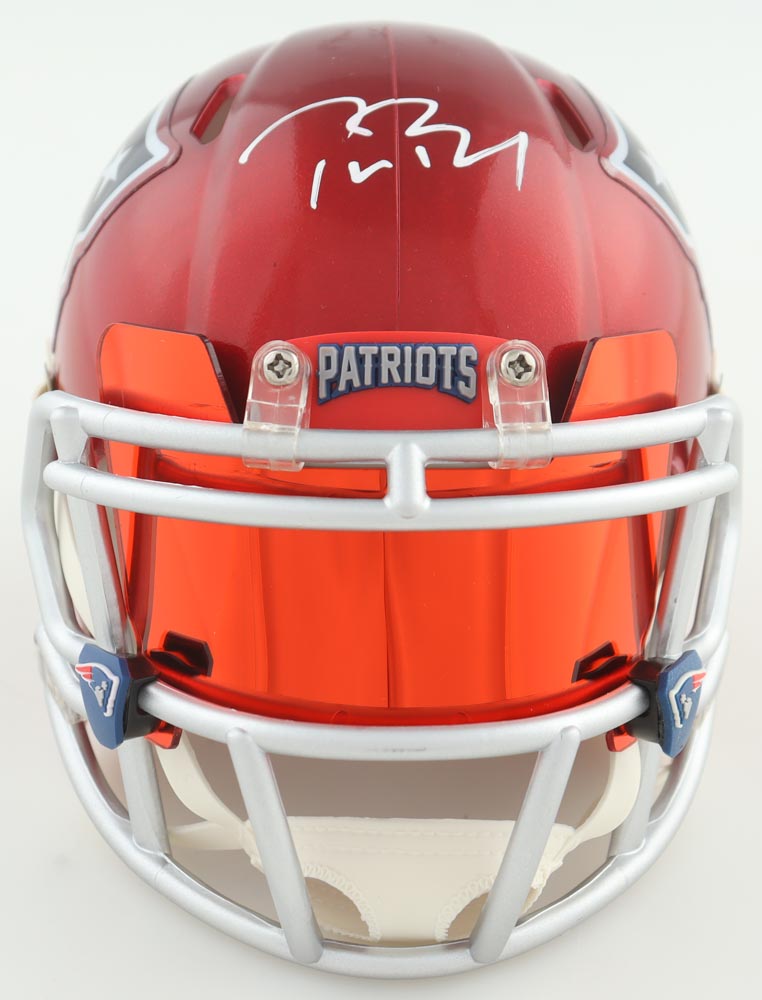 Riddell New England Patriots Flash Alternate Speed mini helmet with visor. Hand-signed by Tom Brady.