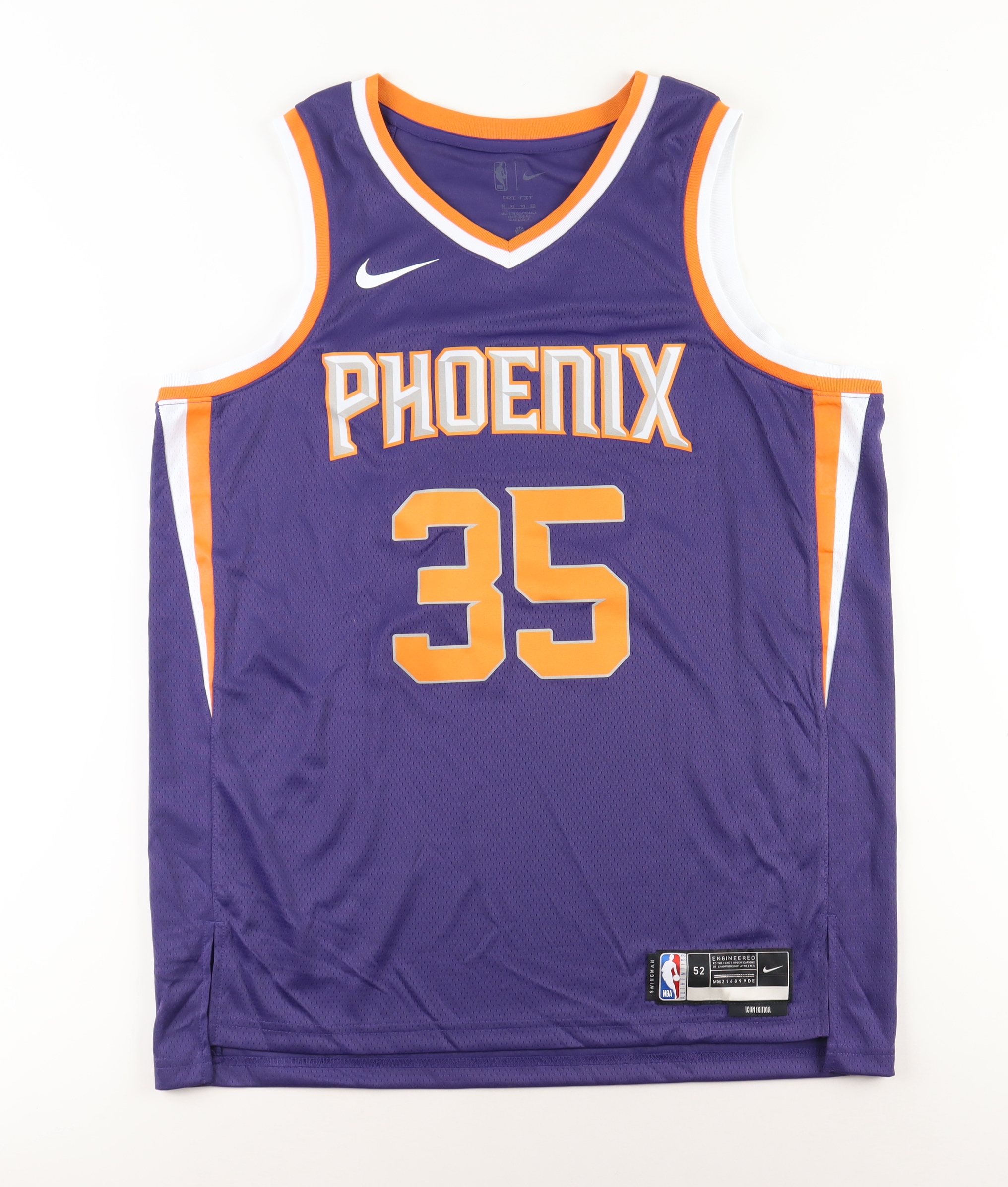 Nike jersey everything is printed on, size 52. Hand-signed by Kevin Durant.
