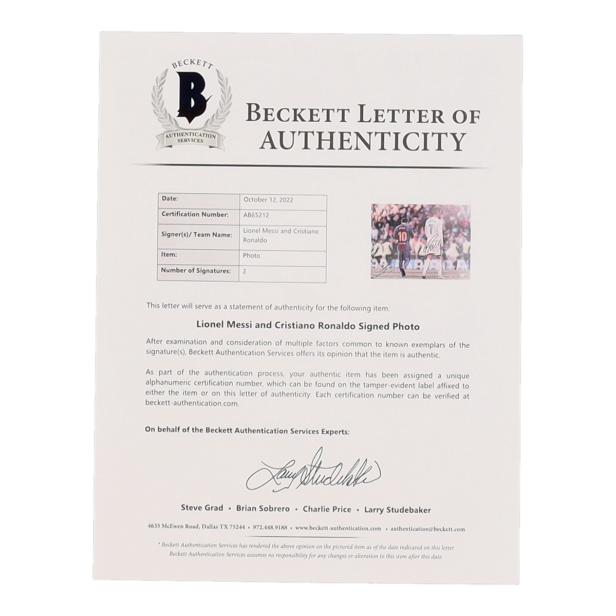 Lionel Messi & Cristiano Ronaldo Signed 12x16 Photo Inscribed "LEO" (Beckett)