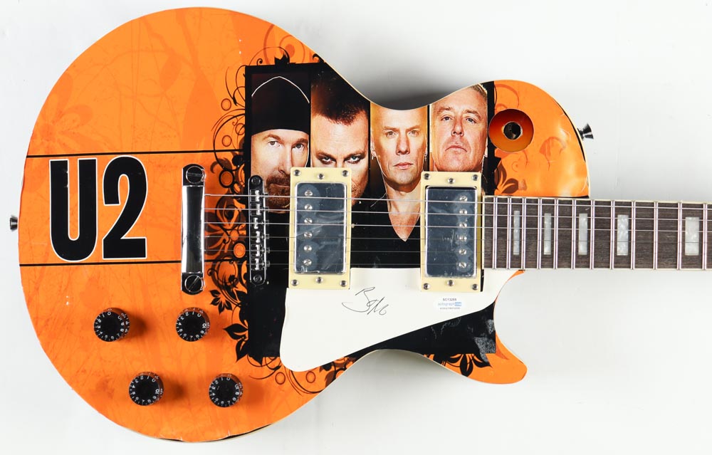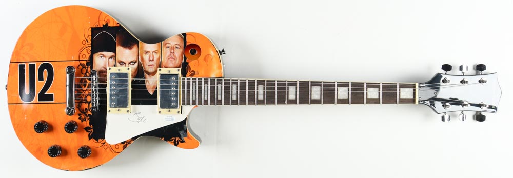 "Signature Edition" full-size electric guitar has been hand-signed on the pick-guard by Bono.